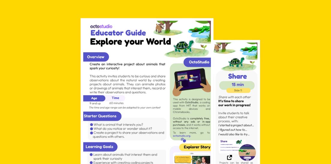 The student handout is designed to help support learners engage in this activity and create projects with OctoStudio, while working at their own pace.