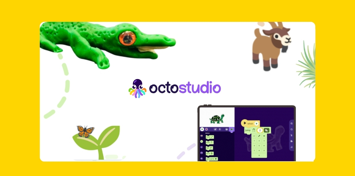 The coding cards offer helpful starting points for learning to code projects in OctoStudio.